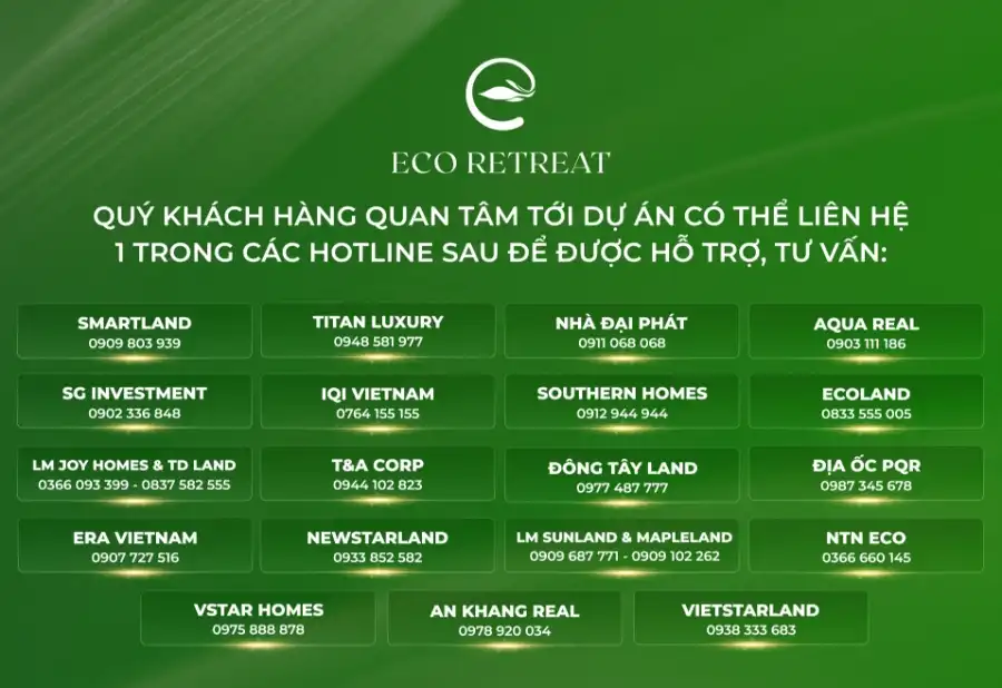 * Khách hàng quan tâm phân khu Rừng Mai của Mùa Lễ Hội liên hệ một trong các đại lý chính thức Eco Retreat để được thông tin, tư vấn.